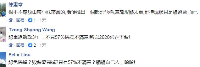 而親綠智庫“臺灣民意基金會”的最新民調(diào)則顯示,有57%的民眾不滿意蔡當(dāng)局執(zhí)政表現(xiàn),比滿意的多19個百分點(diǎn)!基金會董事長游盈隆對此表示,考慮今年是“大選”年,作為執(zhí)政黨,這樣的民意反應(yīng)當(dāng)然不是一個好預(yù)兆。