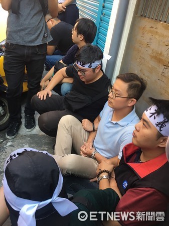 國民黨青年黨工阻擋“執(zhí)行署”查封黨工宿舍。(圖片來源:臺灣“東森新聞云”)