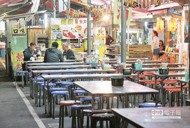 號(hào)稱全臺(tái)最大的高雄凱旋夜市,現(xiàn)只剩大約20攤,不少店家整排座位只有兩三位客人。(圖片來(lái)源:臺(tái)灣《中國(guó)時(shí)報(bào)》)