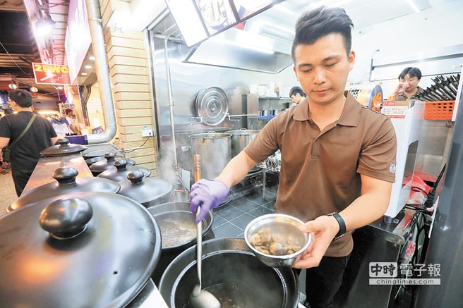 攤商吐苦水:郭龐(康寶藥燉排骨歡樂店長(zhǎng))生意掉了兩成,靠好口碑和知名店,勉強(qiáng)維持。(圖片來(lái)源:臺(tái)灣《中時(shí)電子報(bào)》)