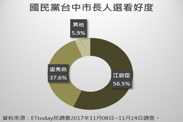 在競爭對(duì)手部分,盧秀燕的民調(diào)支持度暫時(shí)領(lǐng)先江啟臣8%;但在看好度部分,江啟臣則是略高盧秀燕約2%。學(xué)經(jīng)歷部分,有52%民眾認(rèn)為江啟臣比較符合市民對(duì)市長身份的期待,盧秀燕則只有34.51%。在競選對(duì)戰(zhàn)支持度部分,江啟臣以46.3%,勝過林佳龍的30.37%,盧秀燕則以46.43%勝過林佳龍的29.71%。