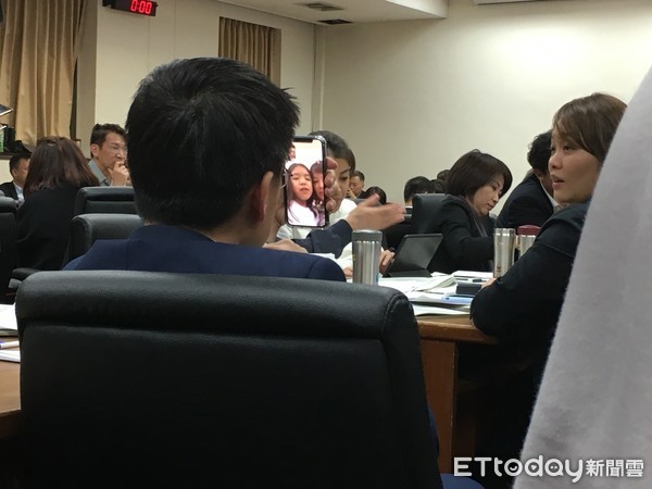 因為議事冗長,有“立委”趁機和家人視頻。(圖片來源:臺灣“東森新聞云”)