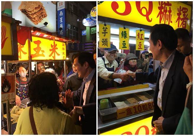 馬英九南下高雄到六合夜市幾乎每攤位都停留,因有“馬英九”這3字,就能吸引陸客!(圖片來源:臺灣《中時電子報》)