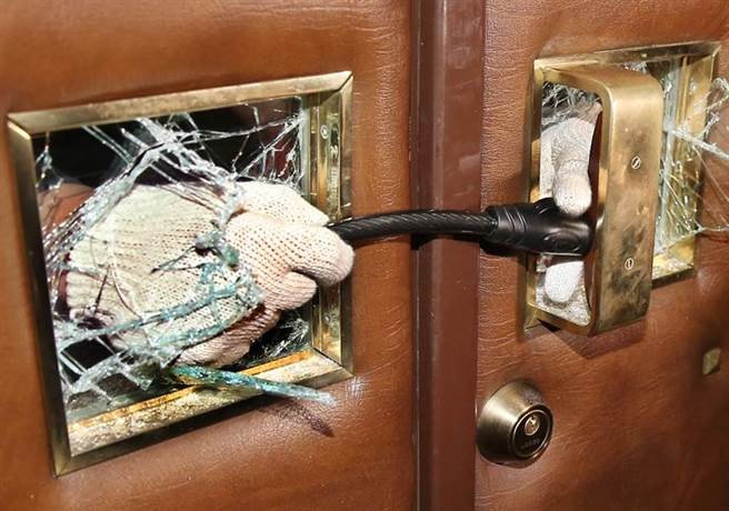 徐永明敲破議場(chǎng)門口玻璃“突襲”后,以鐵鏈反鎖。(圖片來源:臺(tái)灣《聯(lián)合報(bào)》)