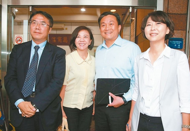 黃偉哲(左一)與陳亭妃(右一)是否出現(xiàn)新系與“正國會”的對決,引發(fā)關(guān)注。(圖片來源:臺灣《聯(lián)合報》)