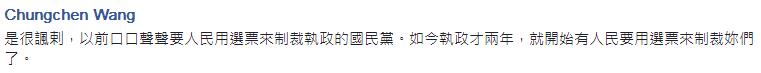 臺網(wǎng)友也清醒地提醒蔡英文“選票是國民黨的嗎?”并表示“早晚受報應(yīng)”。