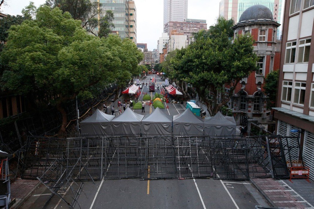臺當局架蛇籠、拒馬警戒。(圖片來源:臺灣《聯(lián)合報》)