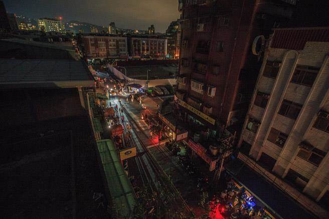 2017年8月15日,臺(tái)灣無預(yù)警大停電。圖為當(dāng)天臺(tái)北市石牌地區(qū)許多民眾在一片黑暗中前往商城用餐。(圖片來源:臺(tái)灣《中時(shí)電子報(bào)》)