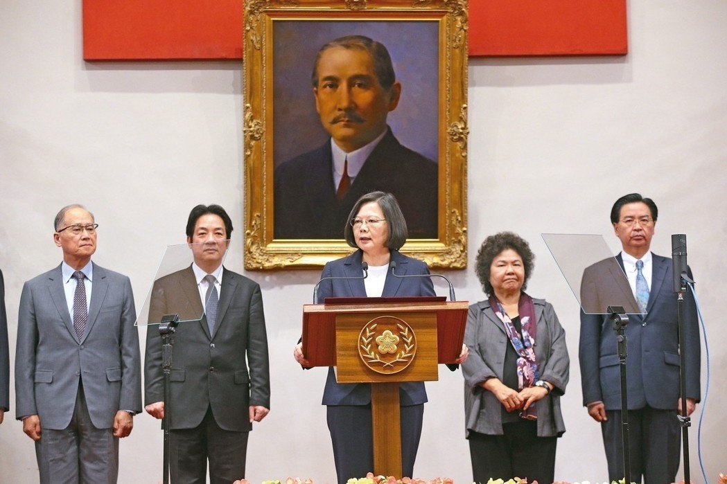 蔡英文率眾召開記者會(huì)。(圖片來源:臺(tái)灣《聯(lián)合報(bào)》)