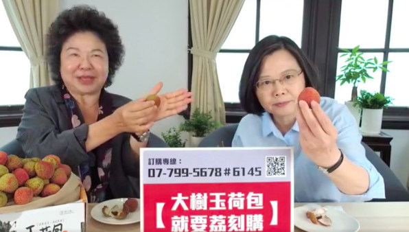 蔡英文直播賣荔枝。(圖片來源:臺(tái)灣“東森新聞云”)