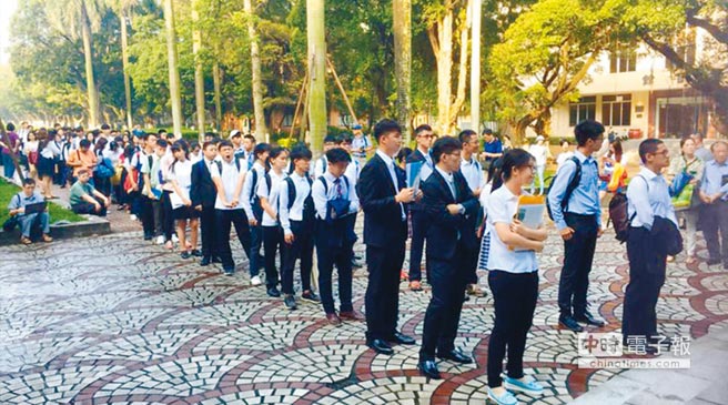 廣州中山大學(xué)大排長(zhǎng)龍等候面試的臺(tái)灣高中生。(圖片取自臺(tái)媒)
