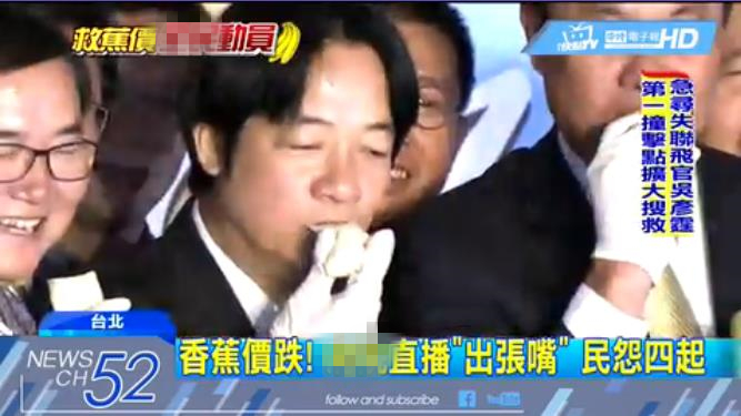 臺當局“行政院”官員直播吃香蕉惹民怨。(圖片截取自臺灣“中天新聞”)