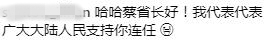 蔡英文這一冷不丁的發(fā)文確實引來了許多網(wǎng)友圍觀,其中不乏一些死忠粉給她留言打氣,但較為引人注目的是,文章下涌入了許多大陸網(wǎng)友,紛紛向“蔡省長”問好。