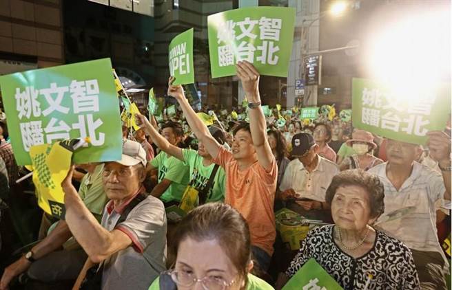 姚文智23日晚間舉辦首場造勢晚會。(圖片來源:臺灣《中時電子報》)