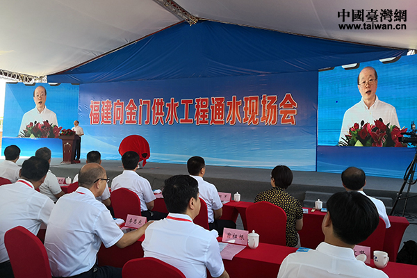 福建向金門供水工程通水現(xiàn)場會在福建晉江舉行,工程實現(xiàn)正式通水。(福建省臺辦 張寧 攝)