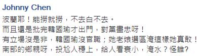網(wǎng)友們紛紛留言“她現(xiàn)在豈不瘋掉了,淹大水耶!是全部南臺(tái)灣呢!”“邱大‘委員’這次怎么沒(méi)有講快要中風(fēng),你是以黨論黨嗎?”“氣到趕快去波蘭狂歡來(lái)壓壓驚咩”“你怎么不罵了?難不成你中風(fēng)了?丟臉啊!薄艾F(xiàn)世報(bào)來(lái)的真快啊”“一個(gè)旗山人跑去金門(mén)玩,一個(gè)旗山‘立委’跑去波蘭玩,不知道這次屏東女兒要砸?guī)着_(tái)電視呢?”