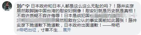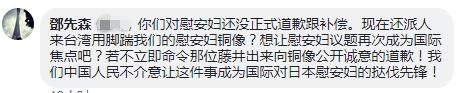 有網(wǎng)友留言向日本喊話:你們對慰安婦還沒正式道歉跟補償。中國人民不介意讓這件事成為國際對日本慰安婦的撻伐先鋒!