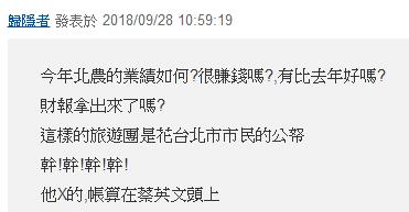 臺(tái)北市府官員表示,北農(nóng)今年以來(lái)營(yíng)利狀況呈現(xiàn)衰退,不過(guò)對(duì)于董事會(huì)的參訪行程卻比過(guò)去大手筆,12天的行程還可攜帶眷屬同行,全部由北農(nóng)買(mǎi)單。