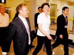 海貿(mào)會(huì)辦理“兩岸經(jīng)貿(mào)促進(jìn)考察團(tuán)”第二團(tuán)12日下午抵臺(tái),圖為海貿(mào)會(huì)理事門(mén)曉偉(中)。(圖片來(lái)源:臺(tái)灣《中國(guó)時(shí)報(bào)》)