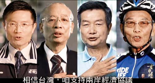 中國臺灣網(wǎng)4月14日消息 據(jù)臺灣《聯(lián)合報》報道,為了宣傳兩岸經(jīng)濟合作框架協(xié)議(ECFA),臺當(dāng)局“經(jīng)濟部”請出臺灣捷安特自行車創(chuàng)辦人劉金標(biāo)、和友紡織董事長卓欽銘、慶鴻機電董事長王武雄、福助針織公司(華貴牌絲襪)總經(jīng)理魏平祺等人拍廣告,以“傳產(chǎn)(傳統(tǒng)產(chǎn)業(yè))F4”身份擔(dān)任代言人。