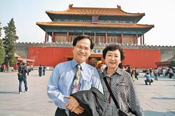 民進(jìn)黨籍臺南縣長蘇煥智15日率團(tuán)抵北京,將在北京舉行臺南愛文芒果的推銷會。圖為蘇煥智夫婦在故宮北門合影。來源:臺灣《中國時(shí)報(bào)》