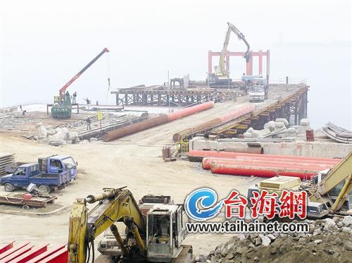 考察團(tuán)上了水頭碼頭,只見碼頭旁邊的大片空地上正在火熱施工,這兒就是金門招商項(xiàng)目之一水頭港經(jīng)貿(mào)園區(qū)的一部分。