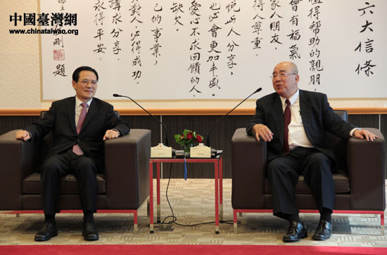 中共河北省委副書記付志方一行在臺北克緹大樓與中國國民黨榮譽主席吳伯雄進行交流。(攝影 中國臺灣網(wǎng) 陳寧)