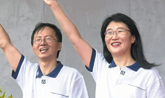 宏達電董事長王雪紅(右)以私人名義入股香港TVB,手機女皇變身媒體皇后。圖左為王雪紅的先生威盛總經(jīng)理陳文琦。(圖片來源:臺灣《聯(lián)合報》)