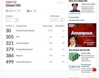 《財富》雜志世界500強,鴻海為臺灣第一。(圖片來自臺媒)