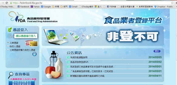 臺(tái)灣歷經(jīng)塑化劑、混充油等食安問(wèn)題之后,“食藥署”今年4月24日公告“食品添加物業(yè)者應(yīng)辦理登錄”,并要求食品添加物制造、加工或輸入業(yè)者,自2014年5月1日起,應(yīng)完成登錄,始得制造、加工或輸入。