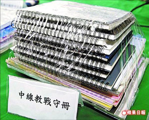 詐騙集團(tuán)主謀要新成員抄錄“教戰(zhàn)守冊(cè)”做筆記。來(lái)源:臺(tái)灣《蘋果日?qǐng)?bào)》