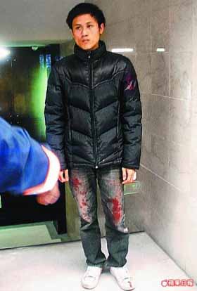 朱淳毅以水果刀刺殺女友十多刀致死,作案后渾身是血。 來源:臺(tái)灣《蘋果日報(bào)》