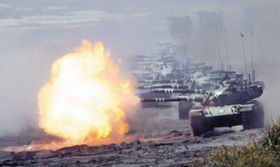 今年7月,臺軍“漢光22號”演習(xí),坦克以火炮射擊海面目標(biāo),實施反登陸操演。但這些作戰(zhàn)計劃,最近因臺陸軍八軍團軍官涉嫌泄漏防務(wù)機密案,而被發(fā)現(xiàn)很可能已流入詐騙集團手中。(圖片來源:臺灣《聯(lián)合報》)