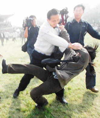 中新網(wǎng)11月13日電 據(jù)臺(tái)灣東森新聞報(bào)道,陳水扁隨行特勤人員日前把嗆扁女學(xué)生扶腰重重摔倒在地,在臺(tái)灣引發(fā)爭(zhēng)論。臺(tái)“國(guó)安局特勤中心”副指揮官許立孟今天(13日)公開道歉,承認(rèn)執(zhí)勤過當(dāng)。