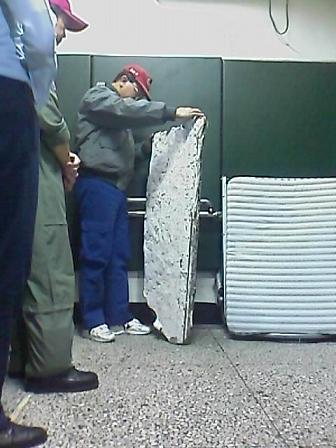 今天下午3點(diǎn)多鐘,花蓮縣北埔派出所接獲漁民報(bào)案,指稱在七星潭海域發(fā)現(xiàn)一塊疑似3月4日墜海的臺(tái)空軍F16戰(zhàn)機(jī)殘骸,于是警察派員前往將這塊長(zhǎng)約1米、寬約40厘米的銀河鐵塊帶回,放置在派出所的偵訊室中,由臺(tái)軍方進(jìn)行鑒定。