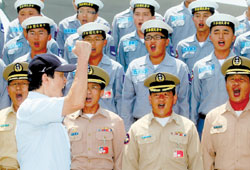 在馬英九指示下,今年“漢光演習(xí)”將不再大規(guī)模進(jìn)行火力展示。圖為馬英九7日前往澎湖慰問海軍艦隊(duì)。