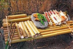 野外有了舒適的住所,吃飯也不能太隨便!吧唢灐笔翘貞(zhàn)部隊的招牌菜,把面粉加糖后拉成條狀,纏在竹桿上烘烤后就能吃了,石板加熱就成為烹調(diào)的平臺,舉凡香腸、雞腿、雞翅與山蘇都能煮熟,隨便煮都是香味四溢,只是煙霧太大,戰(zhàn)時可能會暴露行蹤。