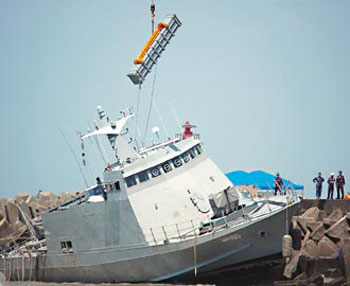 “光華6號(hào)”導(dǎo)彈快艇因執(zhí)行“漢光演習(xí)”任務(wù)而意外擱淺在嘉義布袋港外