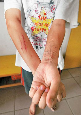 張姓男子手上留下多道割腕傷痕。 來源:臺灣《蘋果日報》