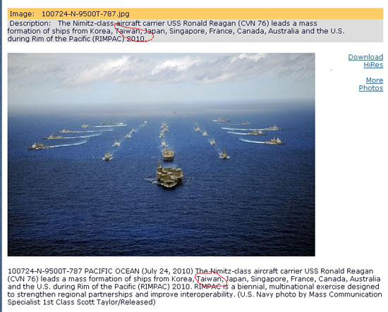 本網(wǎng)記者登陸美國海軍的官方網(wǎng)站,發(fā)現(xiàn)臺灣的名字赫然在列。但臺灣“國防部”方面對此極力否認(rèn),稱應(yīng)該是美國方面的“誤植”。而美國方面的解釋稱,“參見演習(xí)的是泰國而非臺灣”。