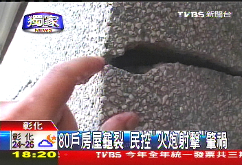 彰化數(shù)十戶村民住宅龜裂,臺(tái)軍火炮演習(xí)被指是主因(圖:臺(tái)灣TVBS電視臺(tái))