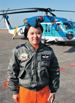 該女性飛行員為趙雅惠,為臺空軍少校,本次展示她將駕駛S-70C表演滯空吊掛。她曾在今年10月間臺風(fēng)環(huán)流的的惡劣氣候條件下,駕駛小救生艇一口氣吊掛起15位船員。趙雅惠在今日上午接受采訪時表示,新竹基地上空側(cè)風(fēng)很強(qiáng),“就好像臺風(fēng)”,她為了這項表演任務(wù)練的全身疼痛。她強(qiáng)調(diào)到時吊掛的是真人,“不容閃失”。