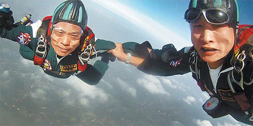 臺灣陸軍空降訓(xùn)練中心昨在屏東空降場展現(xiàn)訓(xùn)練成果,“神龍小組”在高空表演“踩肩式迭傘組合”,并首次展示動力飛行傘的編隊飛行,動力飛行傘利用背負(fù)的飛行傘引擎,可有效執(zhí)行敵后空中突擊、偵搜等任務(wù)。16位女姓士官兵也進(jìn)行了跳傘訓(xùn)練,展現(xiàn)巾幗不讓須眉精神。