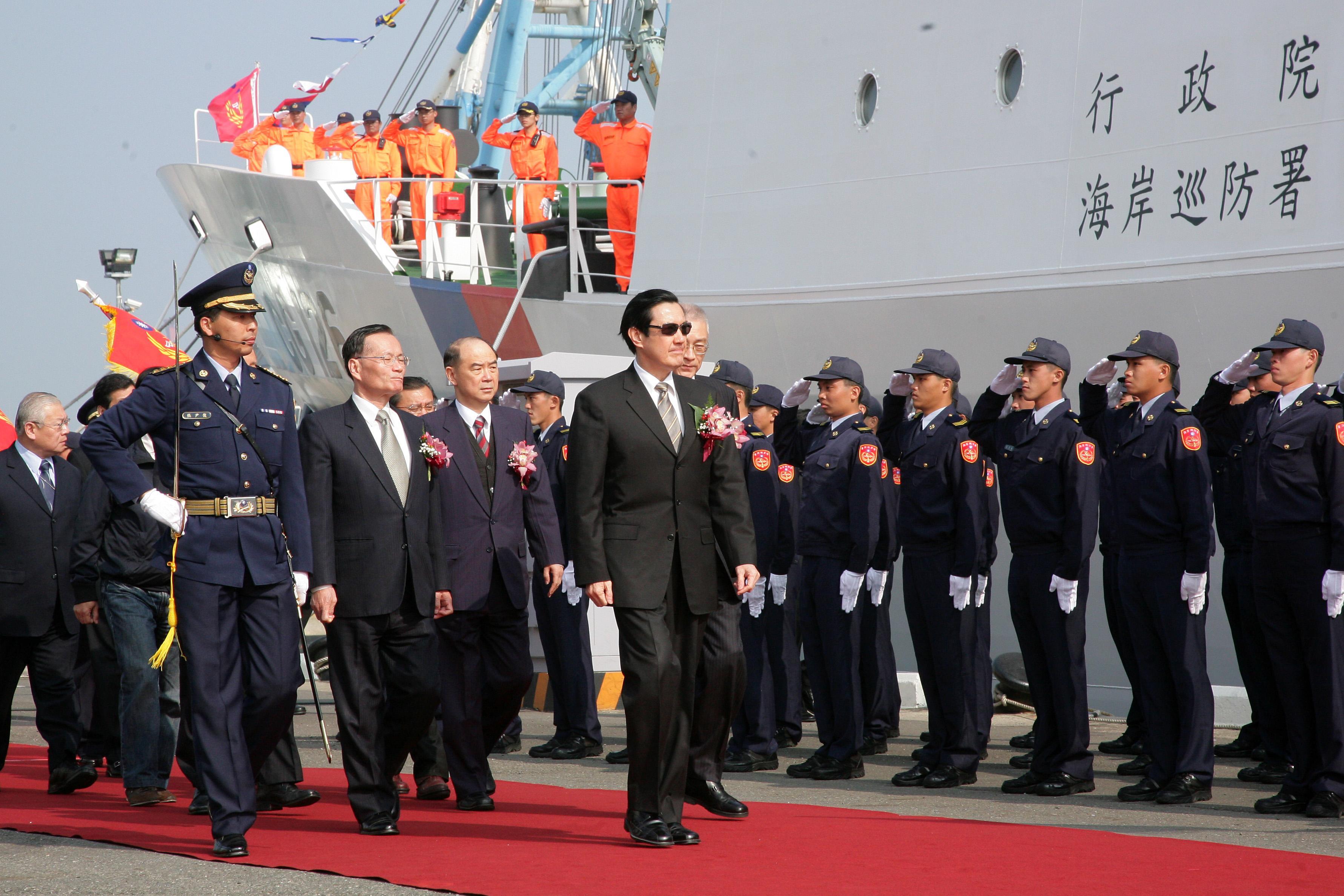 臺(tái)灣“海巡署”新建2000噸級(jí)巡防艦“臺(tái)南艦”(編號(hào)CG-126)及1000噸級(jí)巡護(hù)船“巡護(hù)七號(hào)”,1月26日上午在高雄海巡隊(duì)碼頭舉行成軍典禮。馬英九主持時(shí)表示,二艘船艦維護(hù)主權(quán)及捍衛(wèi)漁權(quán)能量,促進(jìn)區(qū)域興盛與繁榮,也締造了臺(tái)海的和平與安定。