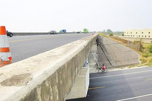 配合臺(tái)軍11日起5天的“漢光”實(shí)兵操演,中山高封閉車道移除中央RC護(hù)欄,凈空成為戰(zhàn)機(jī)跑道。麻豆戰(zhàn)備道設(shè)有從平面道路攀上高速公路的臺(tái)階,不過(guò)軍演當(dāng)天將管制,不容閑雜人等進(jìn)入演習(xí)場(chǎng)地。 圖片來(lái)源:臺(tái)灣《中國(guó)時(shí)報(bào)》