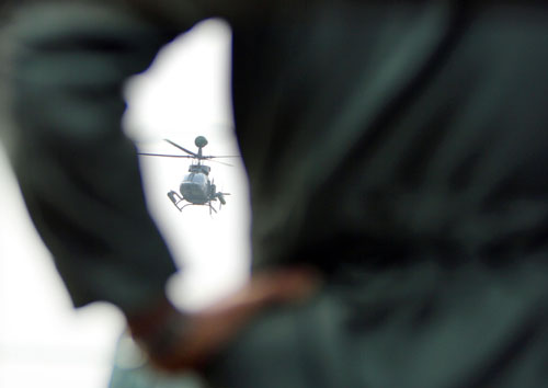 臺(tái)軍12日舉行中山高速公路麻豆段戰(zhàn)備跑道操演。圖為OH-58D直升機(jī)執(zhí)行戰(zhàn)搜演練。 圖片來源:“中央社”