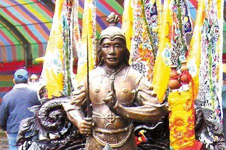 新竹縣寶山鄉(xiāng)九龍宮供奉穿古代軍裝的蔣介石,信徒還不少。圖片來源:臺灣中國時報 陳權欣 攝