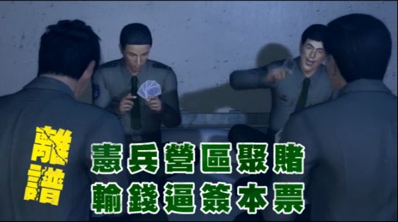 報(bào)道指出,駐守松山機(jī)場(chǎng)的臺(tái)軍憲兵202指揮部350營(yíng),4名士官就寢后玩撲克牌“大老二”,為免出現(xiàn)賭資混亂,還用記點(diǎn)計(jì)算輸贏,曾姓士官因輸了近4萬(wàn)元。當(dāng)其他3人要求付錢(qián)時(shí),曾表明沒(méi)錢(qián),另一名士官怕曾賴(lài)帳,要求曾簽本票。曾簽完本票后,質(zhì)疑自己遭詐賭,向營(yíng)長(zhǎng)自首。