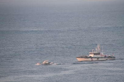 誤闖入射擊區(qū)域的小漁船經(jīng)臺“海巡”艦艇追趕驅(qū)離出后,又再折回進(jìn)入射擊區(qū)。臺軍海龍蛙兵的快艇及臺“海巡”艦艇再度驅(qū)離。圖片來源:臺灣媒體