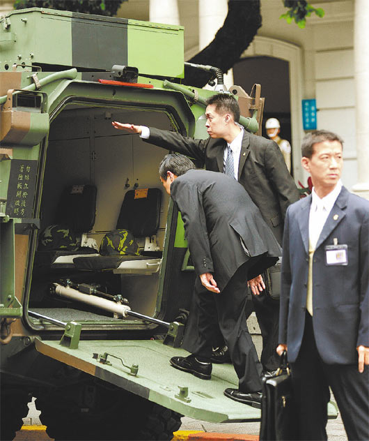 馬英九進(jìn)入“云豹”裝甲車 (圖片來源:臺灣《聯(lián)合報》)